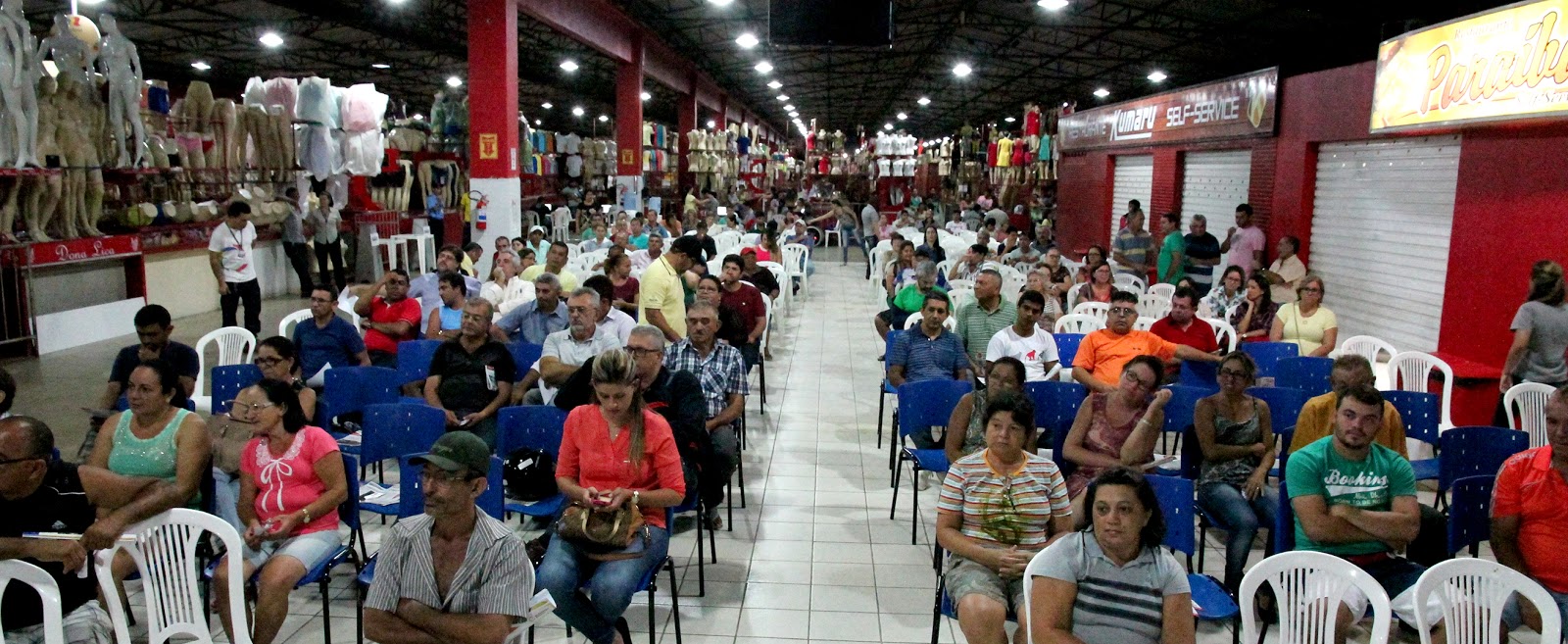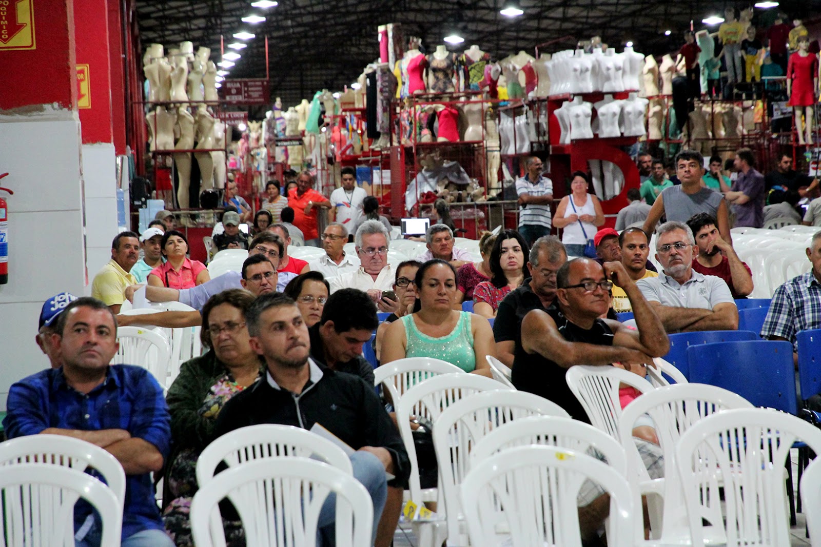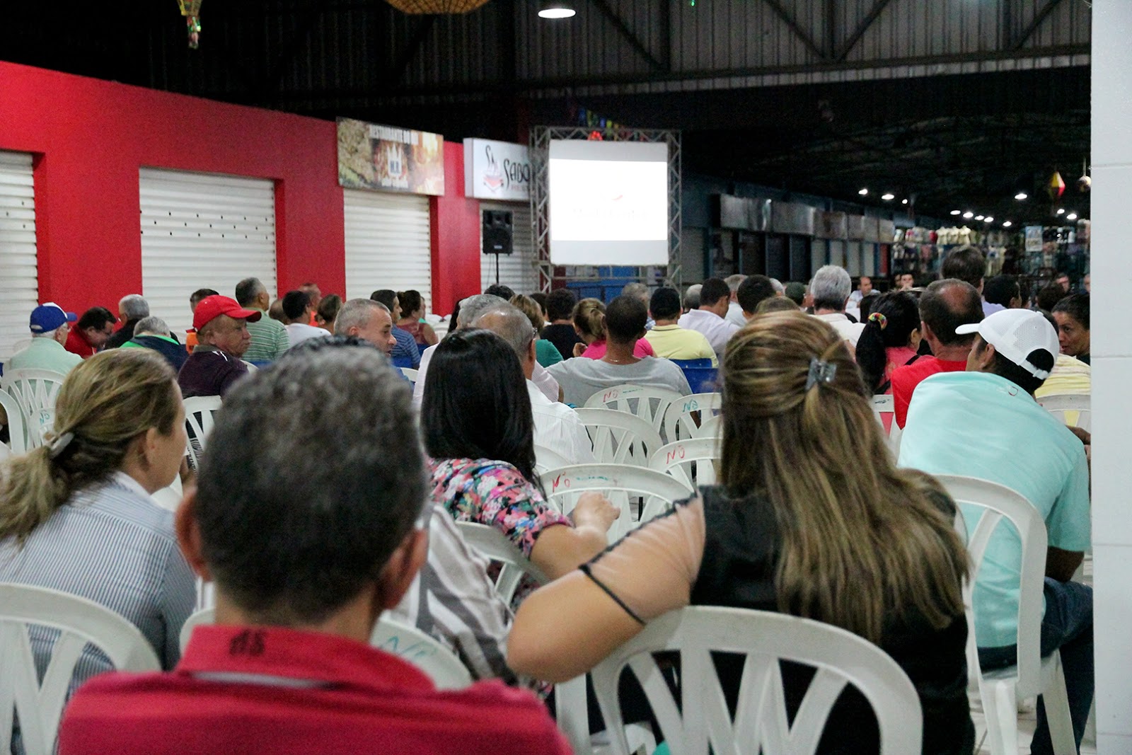 A Assembleia Geral do Moda Center Santa Cruz começou em segunda chamada, às 18h, e terminou por volta das 20h40. A fim de acolher melhor o público participante, o encontro aconteceu na praça de alimentação do Setor Vermelho, onde recentemente foram instalados três climatizadores de ar.