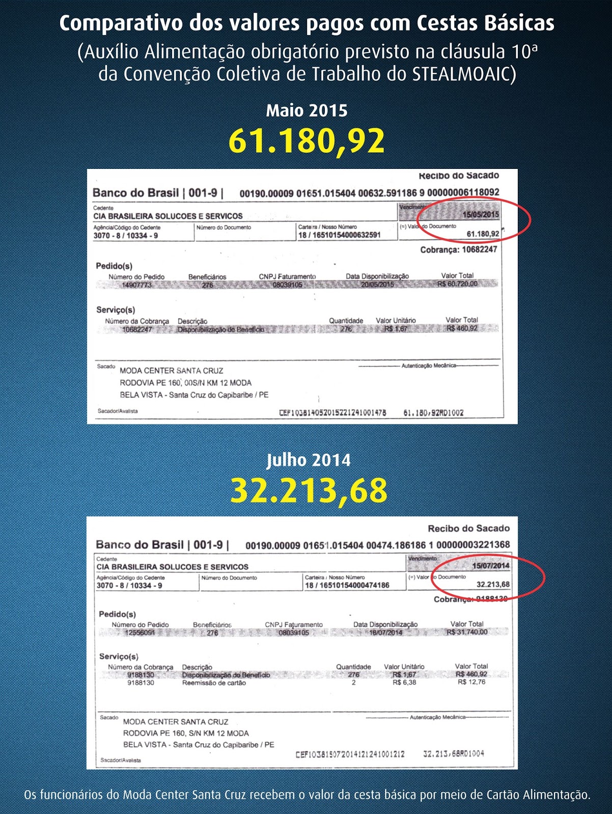 Foram exibidos alguns dos comparativos que justificaram o ajuste: