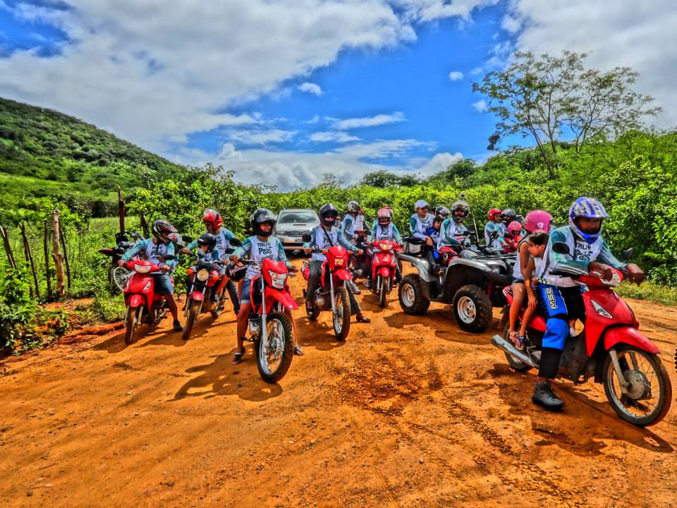 Os papais e suas famílias foram recebidos na escola com um delicioso coffee-break e, em seguida, partiram de até o distrito de Tabocas em carros, motos, bicicletas e até de carona para uma grande trilha que aproximou a todos do contato com a natureza exuberante da nossa região.