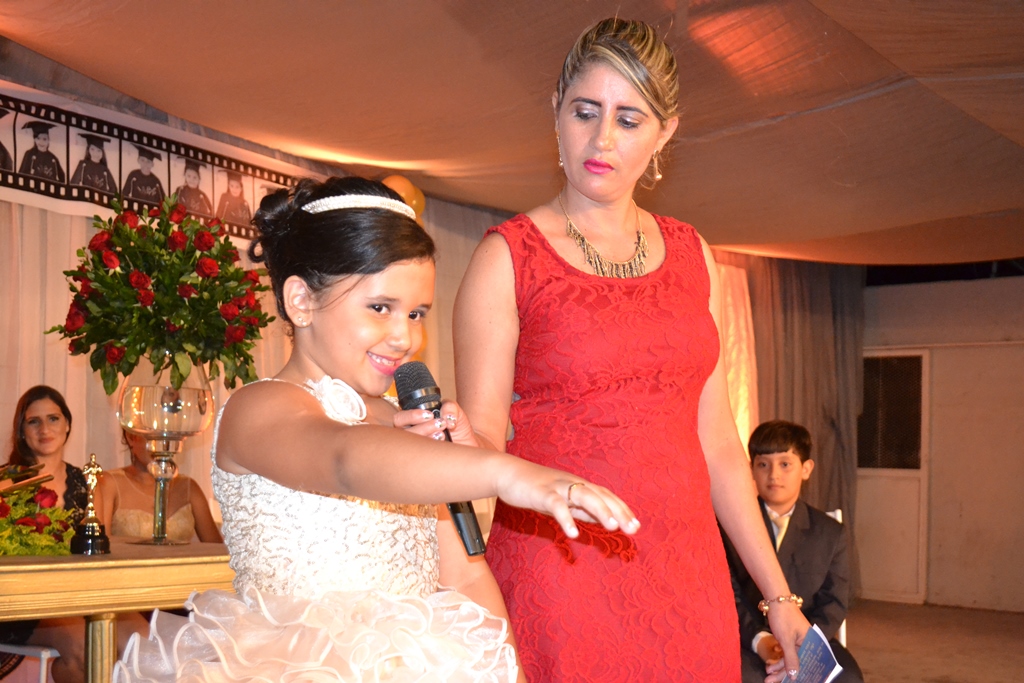 Um dos momentos mais emocionantes da noite foi quando os pequenos oradores fizeram os discursos de agradecimentos e o juramento. Professores, pais e todo o público perceberam o poder da Educação demonstrado nessa que é a primeira grande conquista na vida desses alunos.