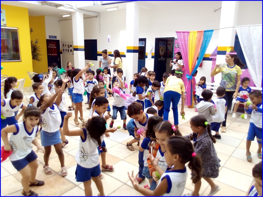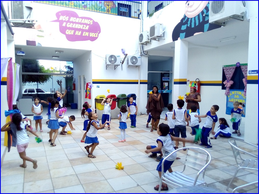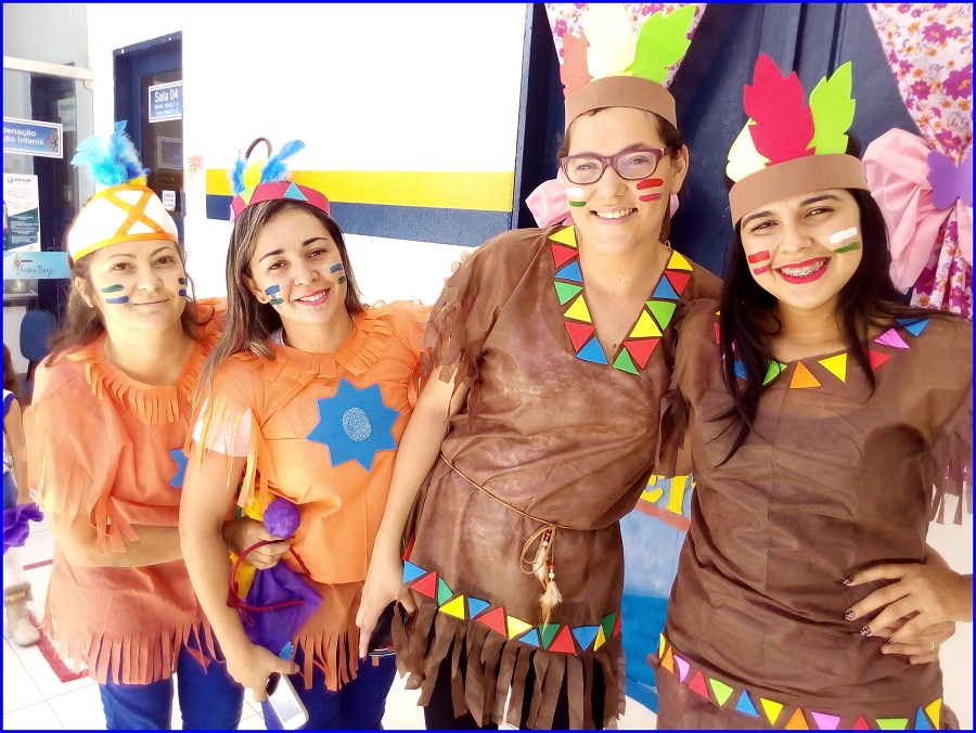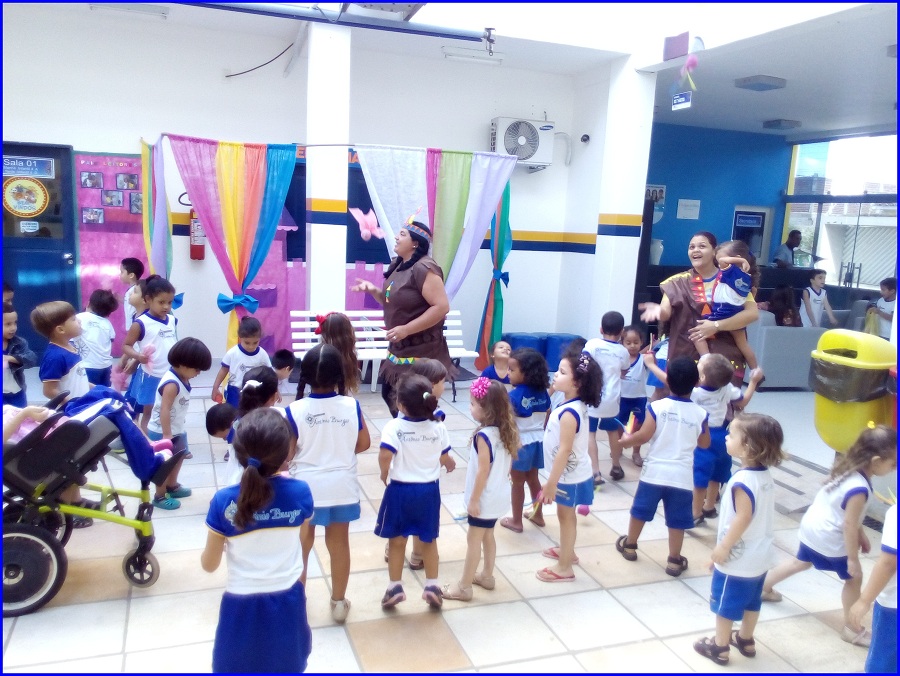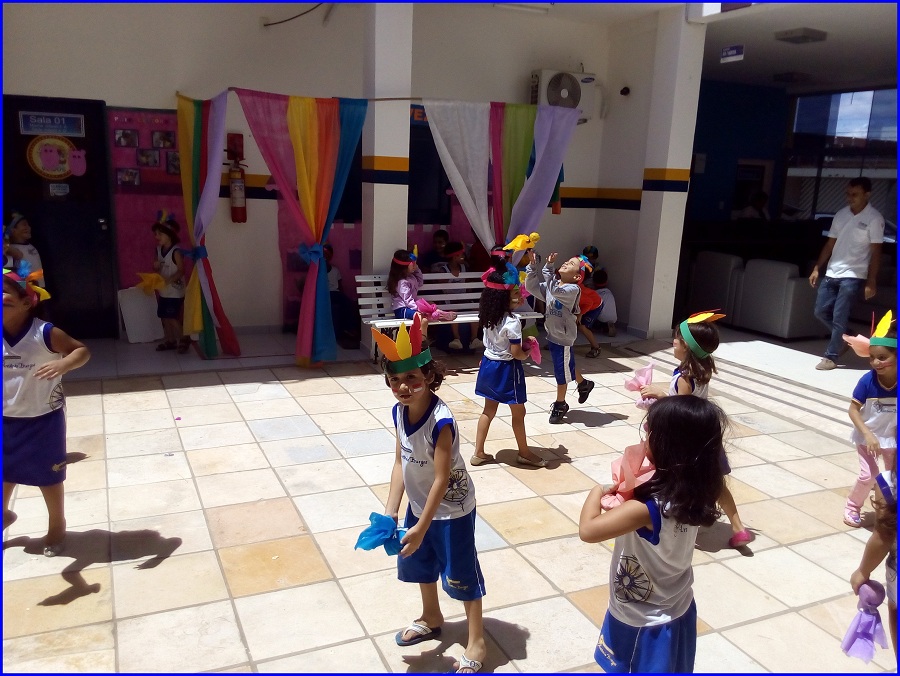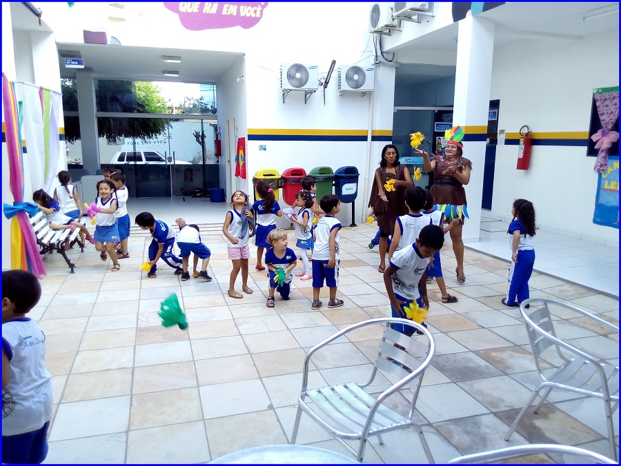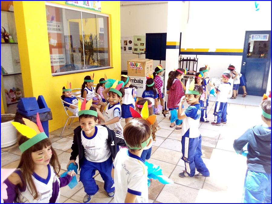 Hoje o dia de aula contou com um clima diferente em nossa escola. Os alunos e professores da Educação Infantil se encontraram no pátio para celebrar as contribuições culturais e tradições dos primeiros habitantes do Brasil, os índios.