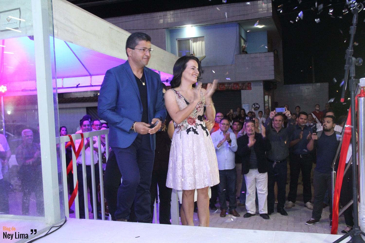 O corte da fita de inauguração foi feito pelo casal de empresários, onde todos os convidados puderam conferir toda a estrutura da nova unidade da JCL Casa & Construção.