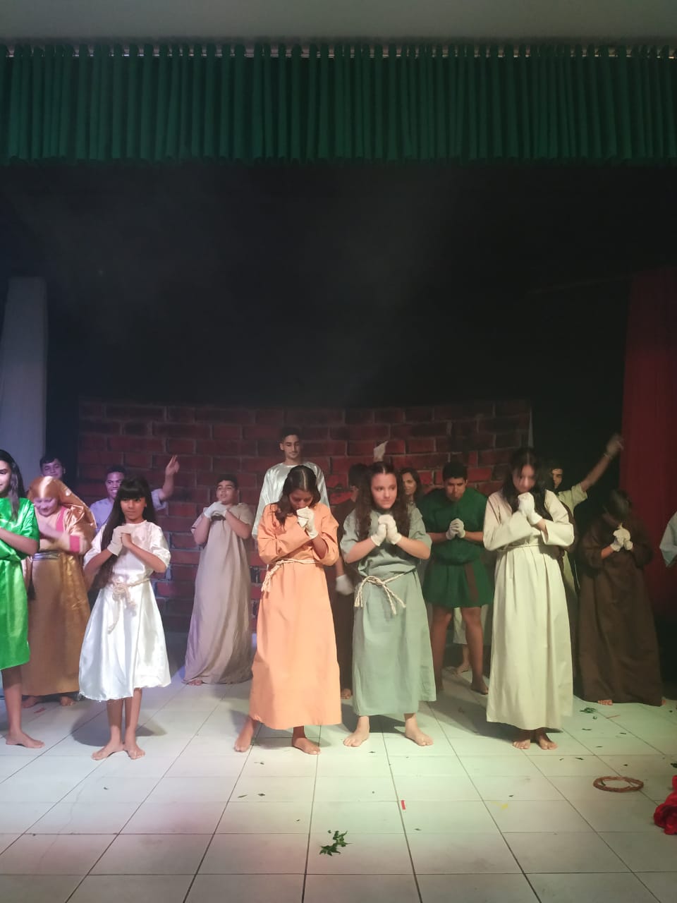 O musical encenado pelos alunos do Ensino Fundamental anos finais e Ensino Médio contou com a direção do professor Fagner José e o apoio dos professores Luiz Eduardo e Rosely Guimarães, numa edição repaginada da tradicional encenação Cristo O Messias realizada pela Escola Antônio Burgos há 16 anos. Foi um momento marcante de celebração com toda a comunidade escolar.