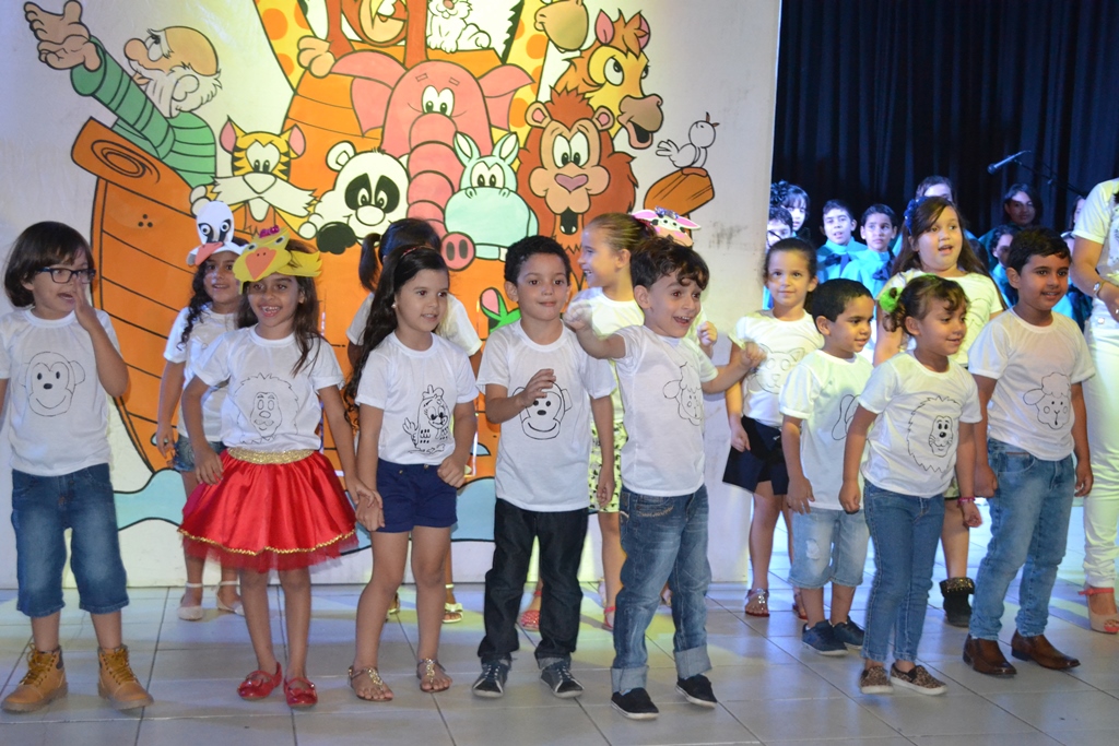 Colocando em cena a beleza de cada espécie de animais que Noé colocou na arca, os alunos do Jardim I e II C, realizaram sua participação através da música ‘Arca de Noé’. Enquanto com muita pureza e alegria as turmas do Jardim I e II da Manhã, retrataram o colorido mágico do arco-íris que o Criador nos presenteou.