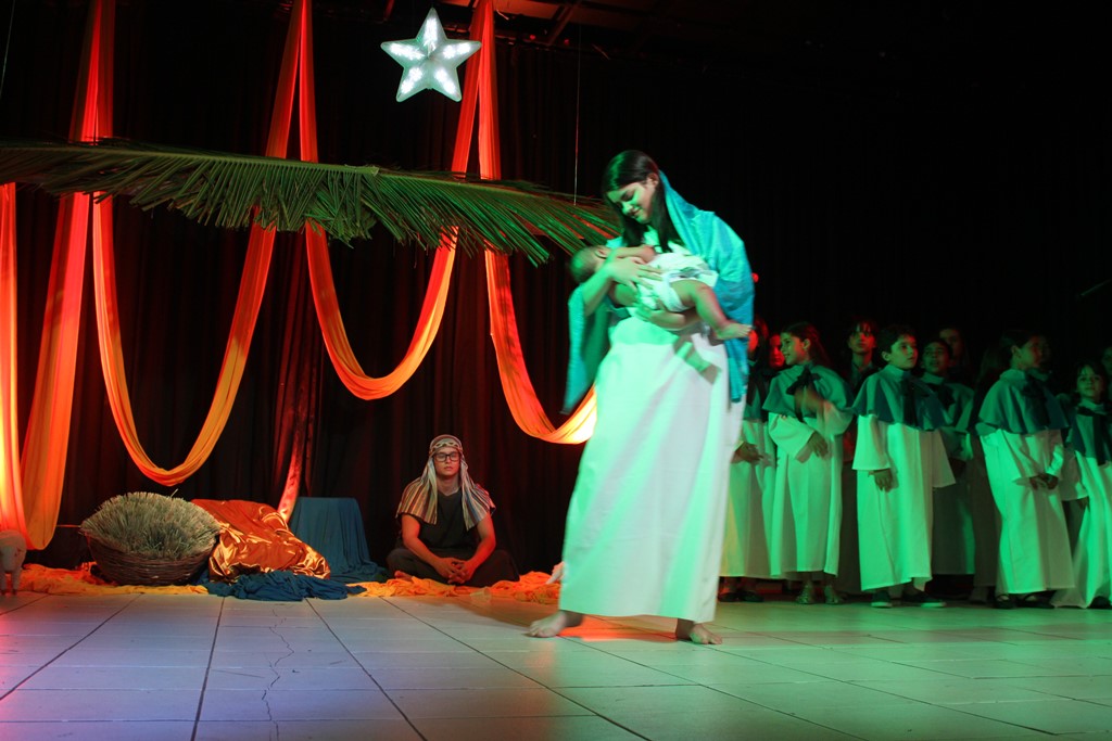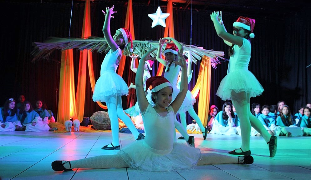Mas muito ainda havia sido preparado para essa noite especial. O balé formado por alunos da escola registrou de maneira brilhante sua participação. Através da linguagem da dança, as bailarinas anunciaram a alegria do amor e a emoção da chegada do presente maior, o Menino Jesus. E aos poucos foram surgindo os anjos do Maternal A e B, que harmoniosamente ficaram adorando o Menino Jesus. Depois, surgiram também os pastores, interpretados por alunos das turmas dos 2º anos dos turnos manhã e tarde, que alegremente vieram adorar o Salvador.