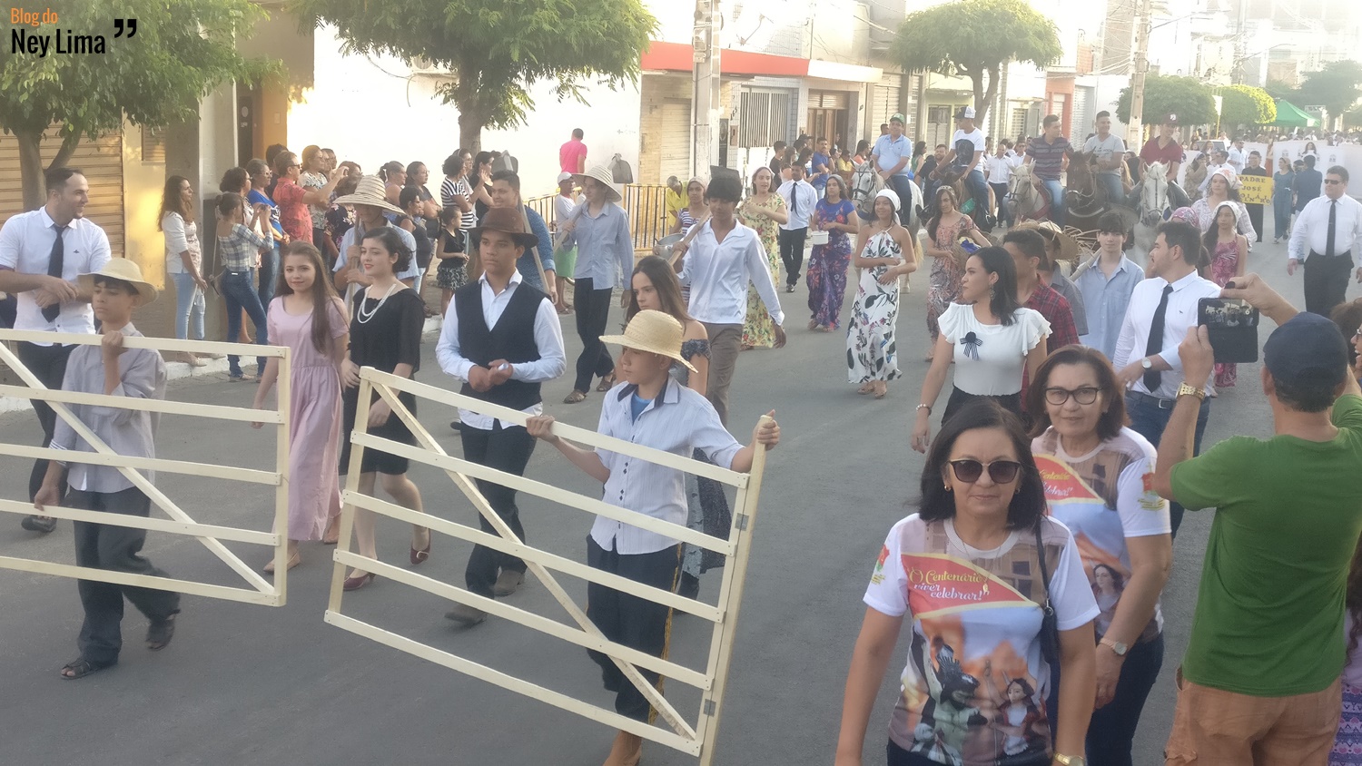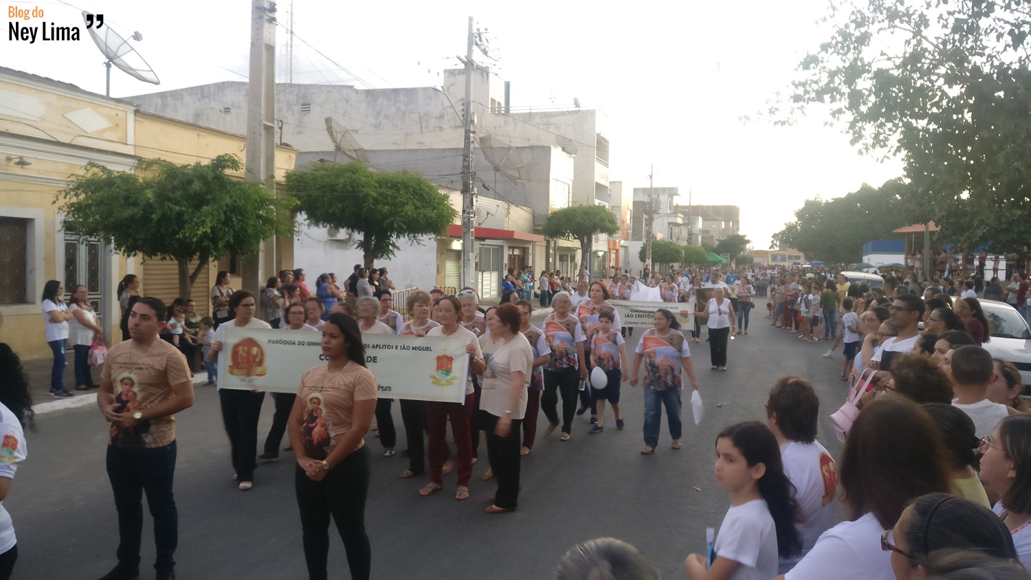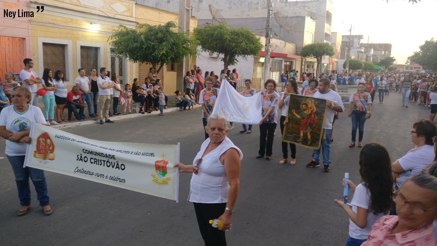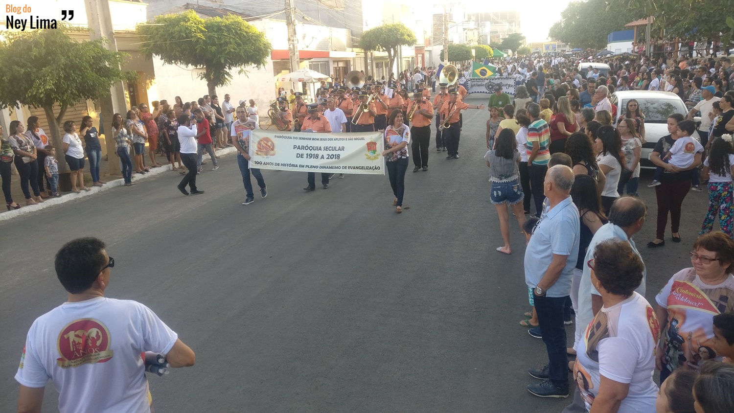Centenas de pessoas acompanharam o desfile, que marca as comemorações do Centenário da Paróquia de Bom Jesus dos Aflitos e São Miguel em Santa Cruz.