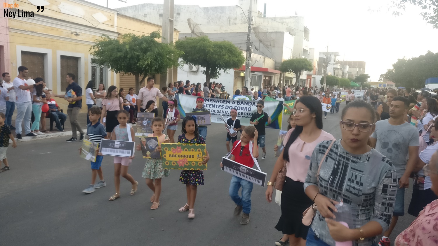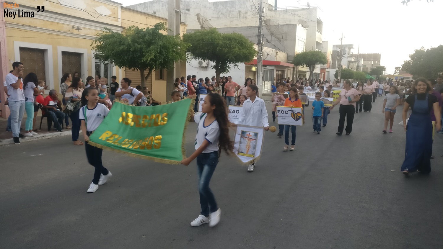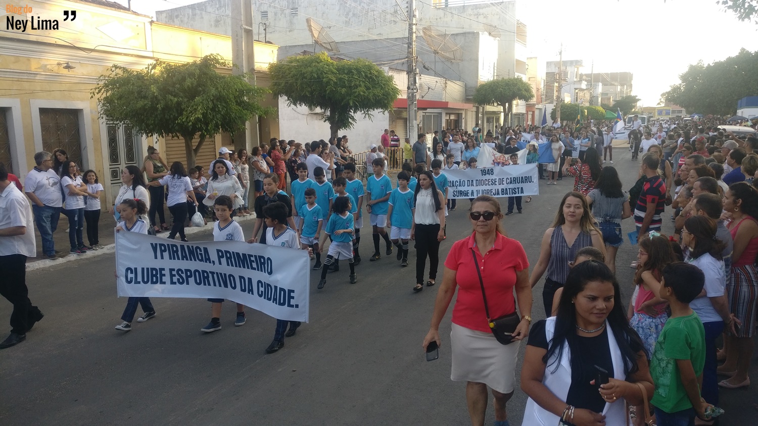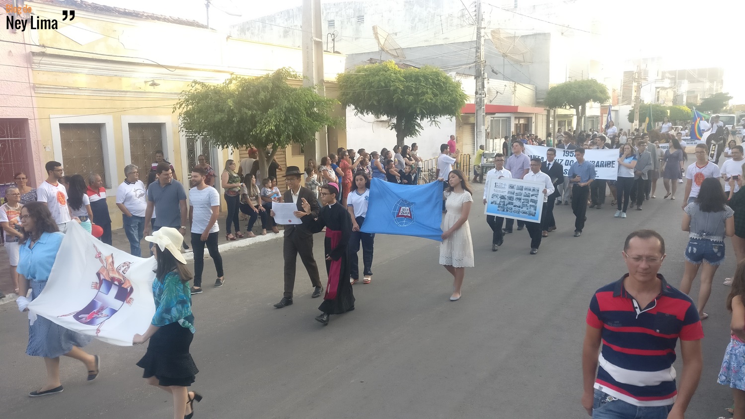 Centenas de pessoas acompanharam o desfile, que marca as comemorações do Centenário da Paróquia de Bom Jesus dos Aflitos e São Miguel em Santa Cruz.