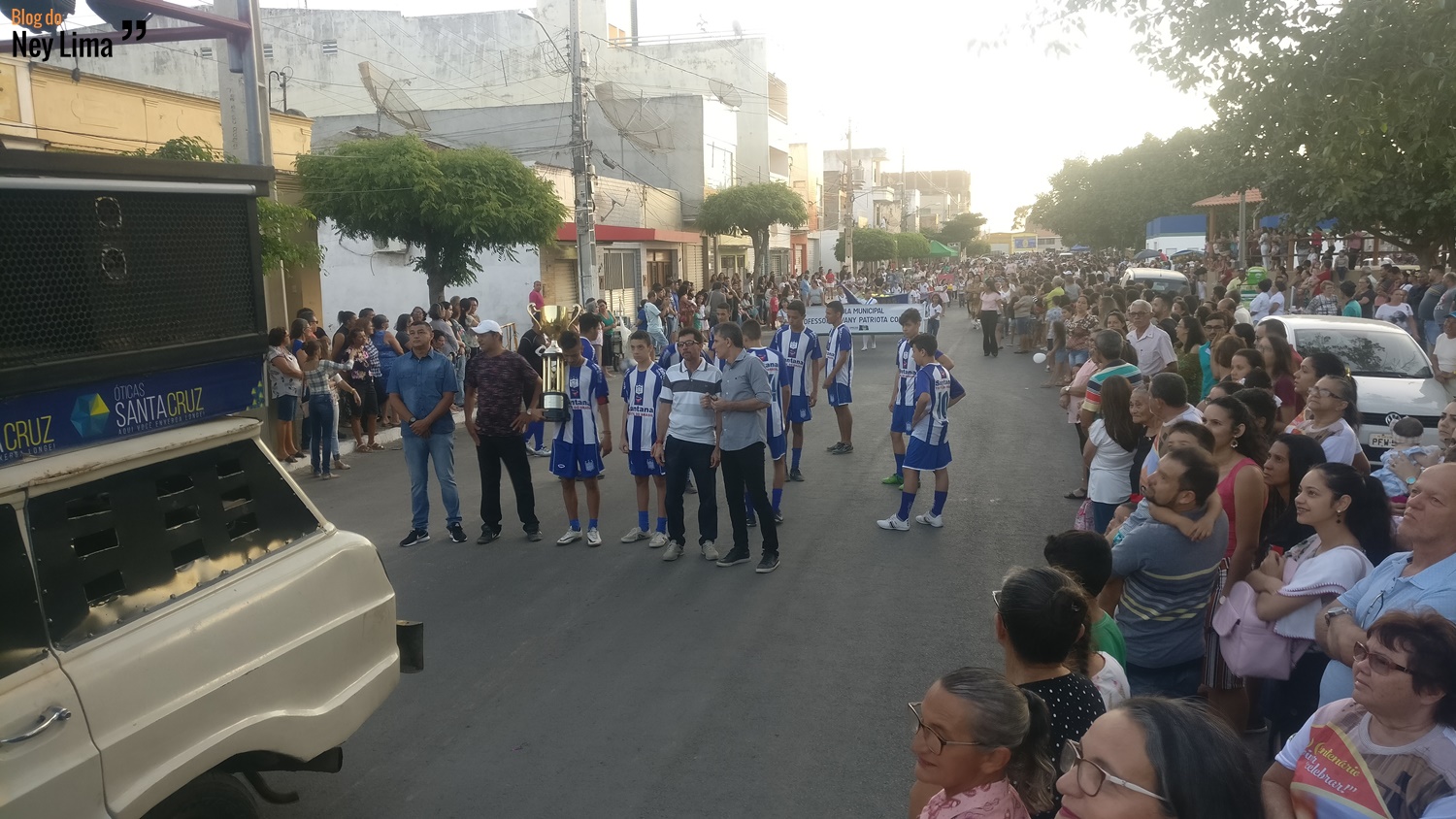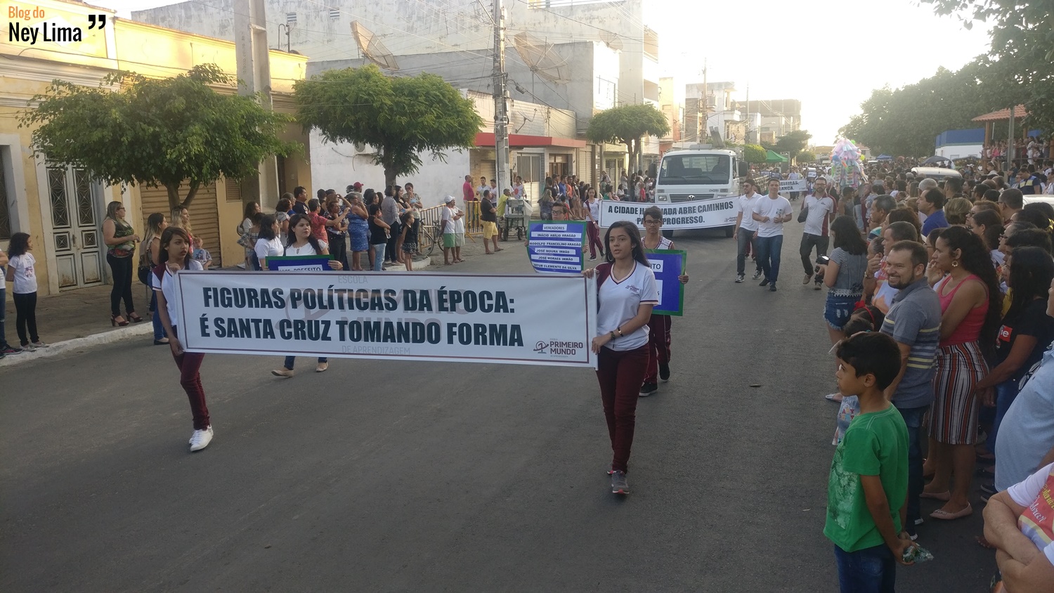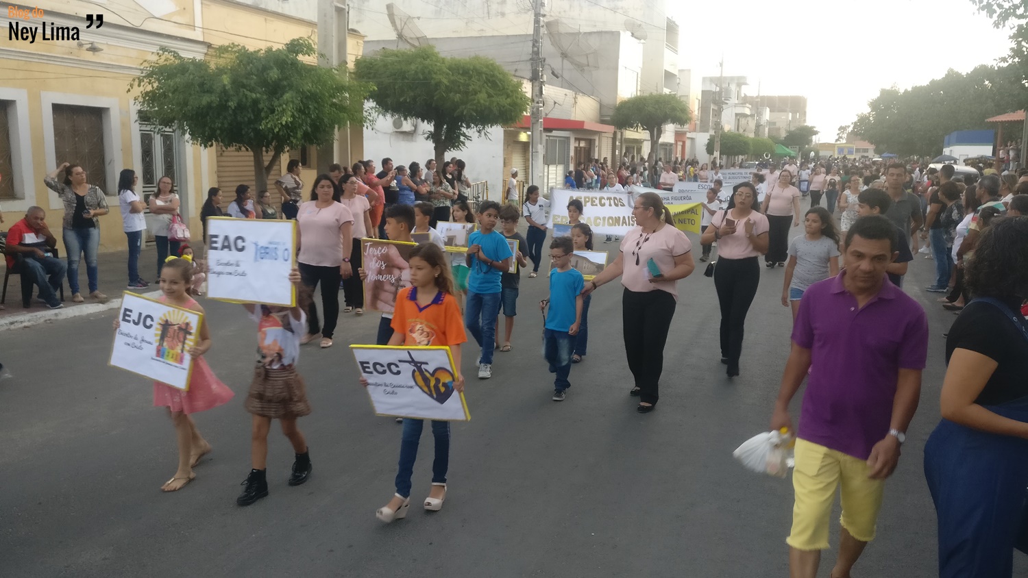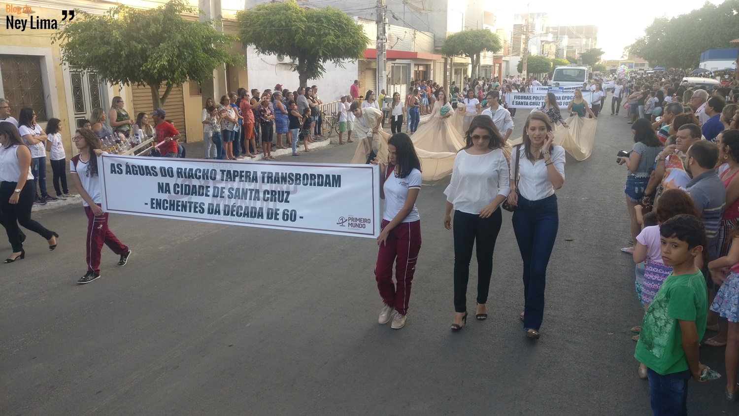 Centenas de pessoas acompanharam o desfile, que marca as comemorações do Centenário da Paróquia de Bom Jesus dos Aflitos e São Miguel em Santa Cruz.