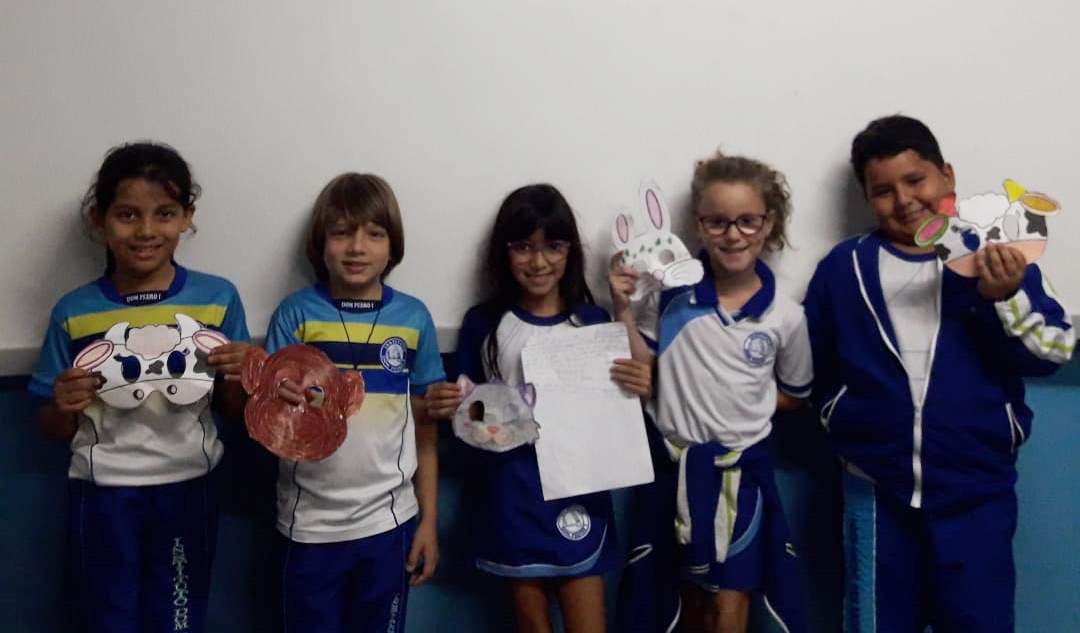 Os alunos do ‘3º ano A’ em grupos criaram suas próprias fábulas e personagens, mostrando através de apresentações o que foi enfatizado durante a aula.