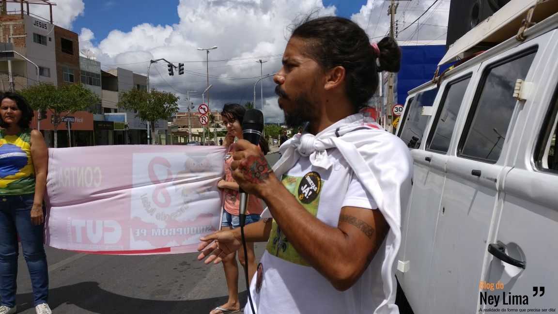 Os manifestantes se concentraram na Rua Raimundo Francelino Aragão, passaram pela Prefeitura municipal e avançaram por algumas das principais ruas do centro, em direção a Avenida 29 de Dezembro.