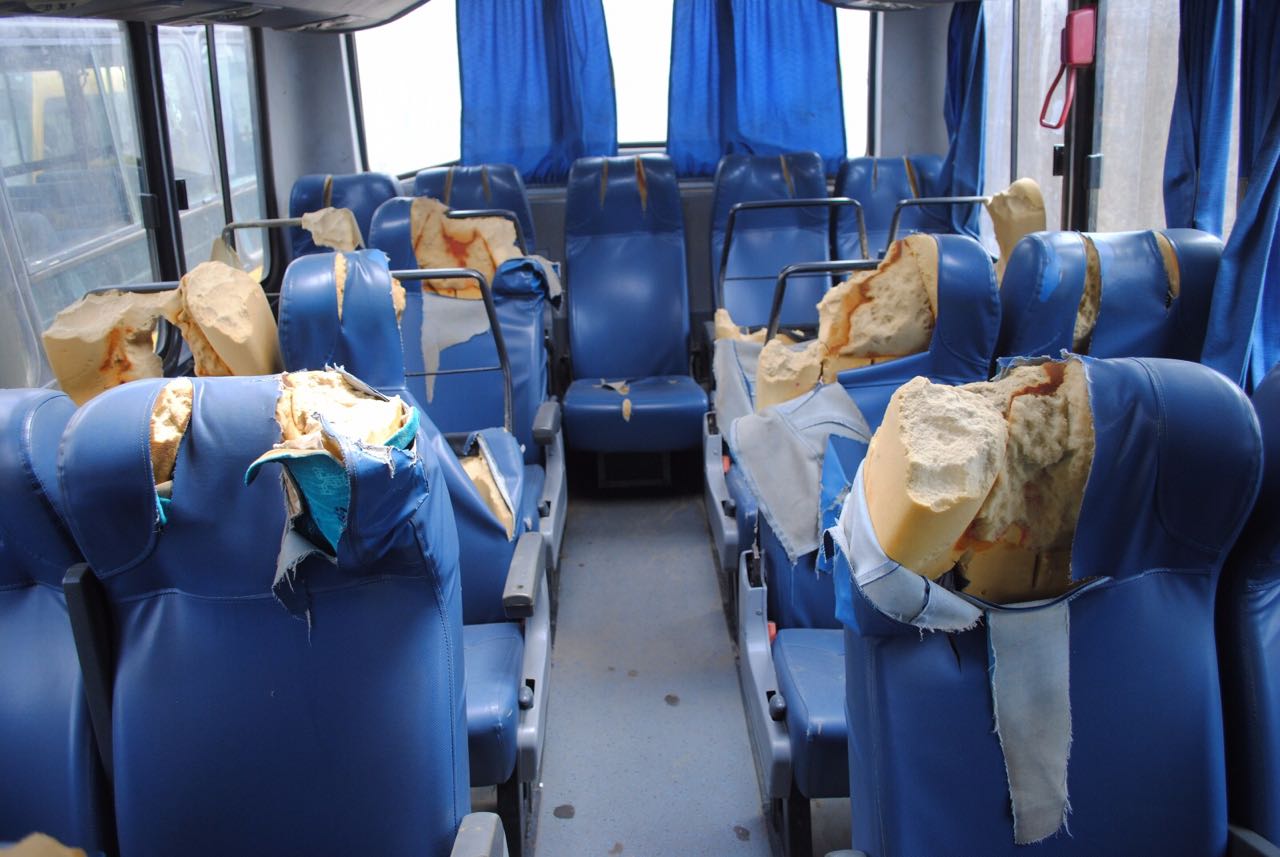 Cadeiras de ônibus escolar teriam sido rasgadas em atos de vandalismo – Fotos: Ascom PM Toritama