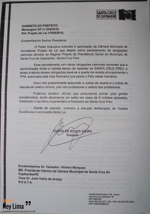 Já o presidente Afrânio enfatizou que o mesmo será votado em maioria simples, por não se tratar, segundo ele, de uma nova dívida a ser contraída pela prefeitura e sim um acordo para quitar uma já existente.