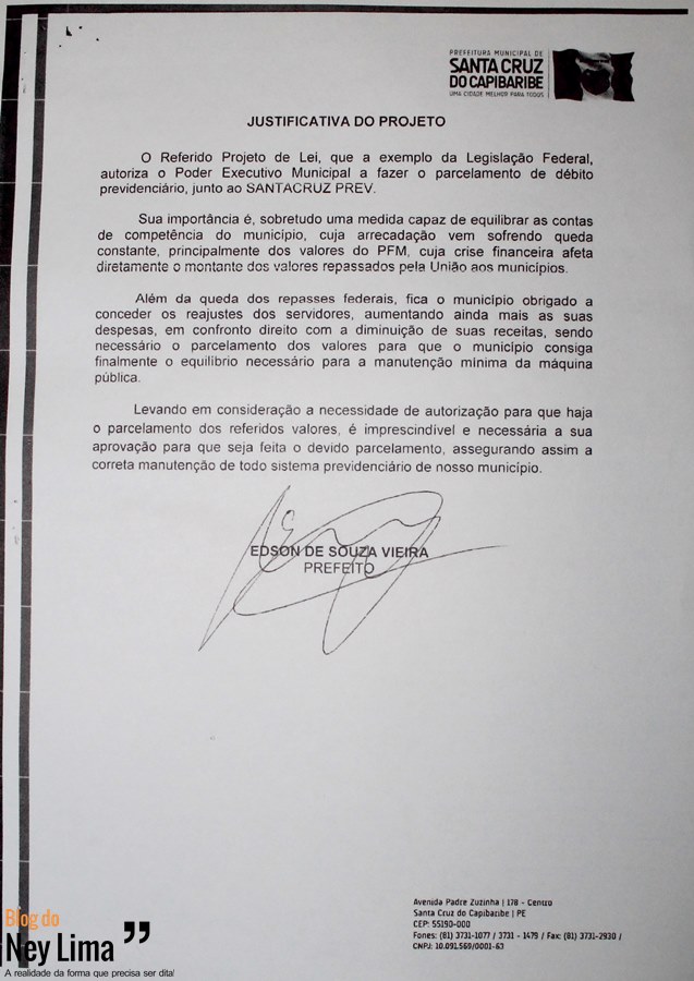 De acordo com o projeto, as justificativas alegadas para o parcelamento foram a queda nos repasses do Fundo de Participação dos Municípios (FPM) e a atual crise econômica.